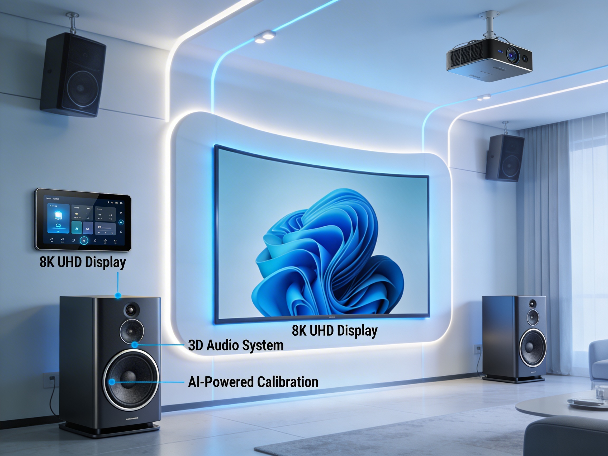 • Adaptive sound mapping: Built‑in microphones analyze room acoustics to optimize speaker output automatically.