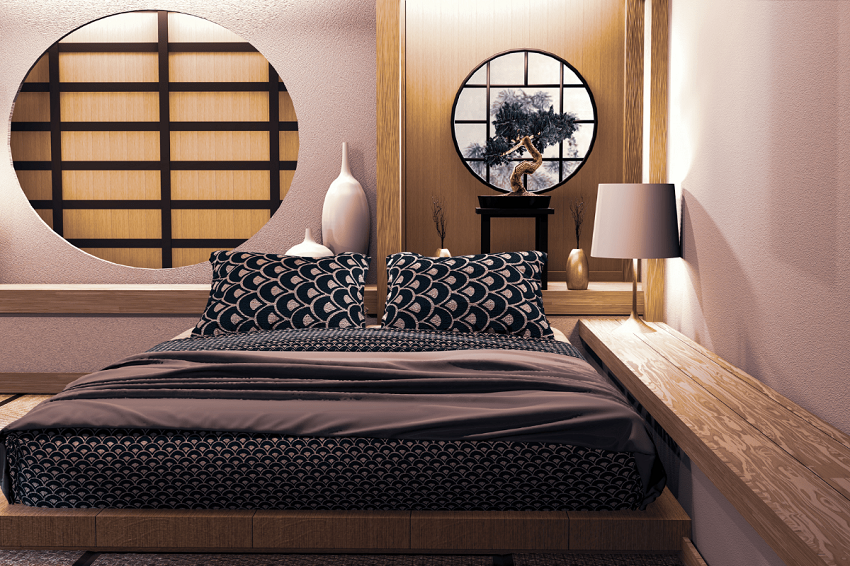 - Bed: Low platform/futon (Japanese) vs raised frame with storage (Western).